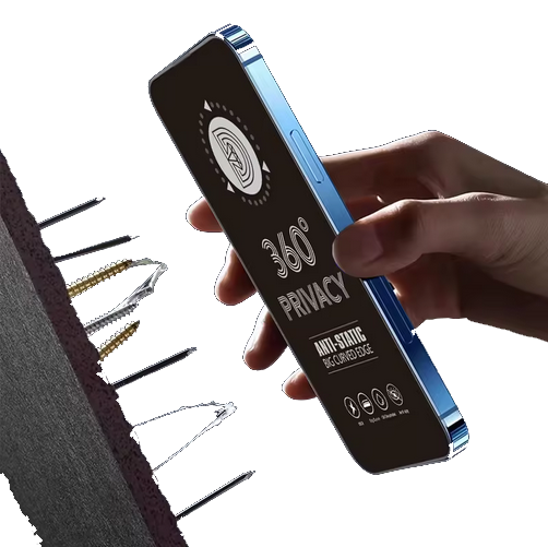 0.33 mm · 9H · Oleophobic coating — no plastic frames, no install kits.